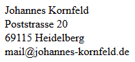 Person, Post- und Kontaktadressen und die zur Bewerbung gehörenden